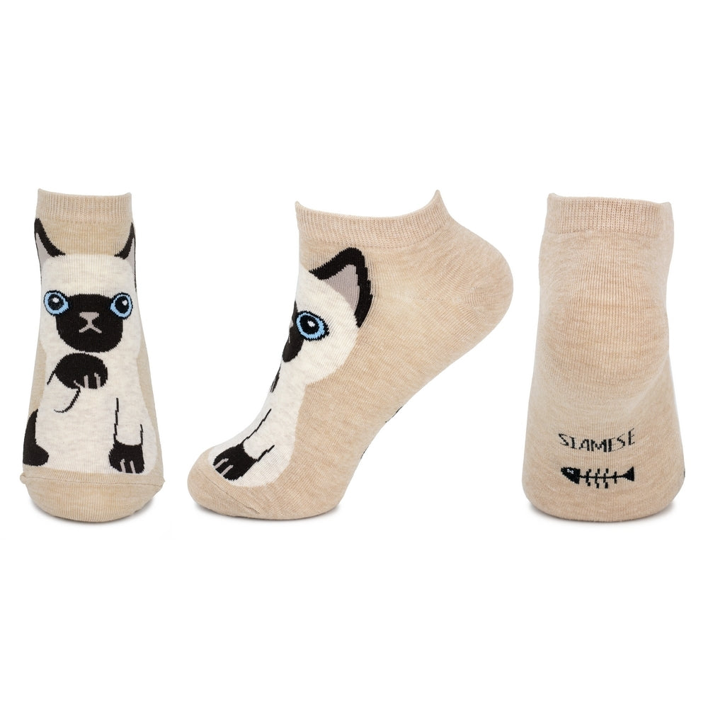 Ladies ankle Siamese cat beige socks made of cotton & spandex