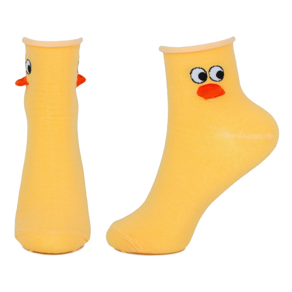 Ladies Big Eye Quackers Yellow Ankle Socks