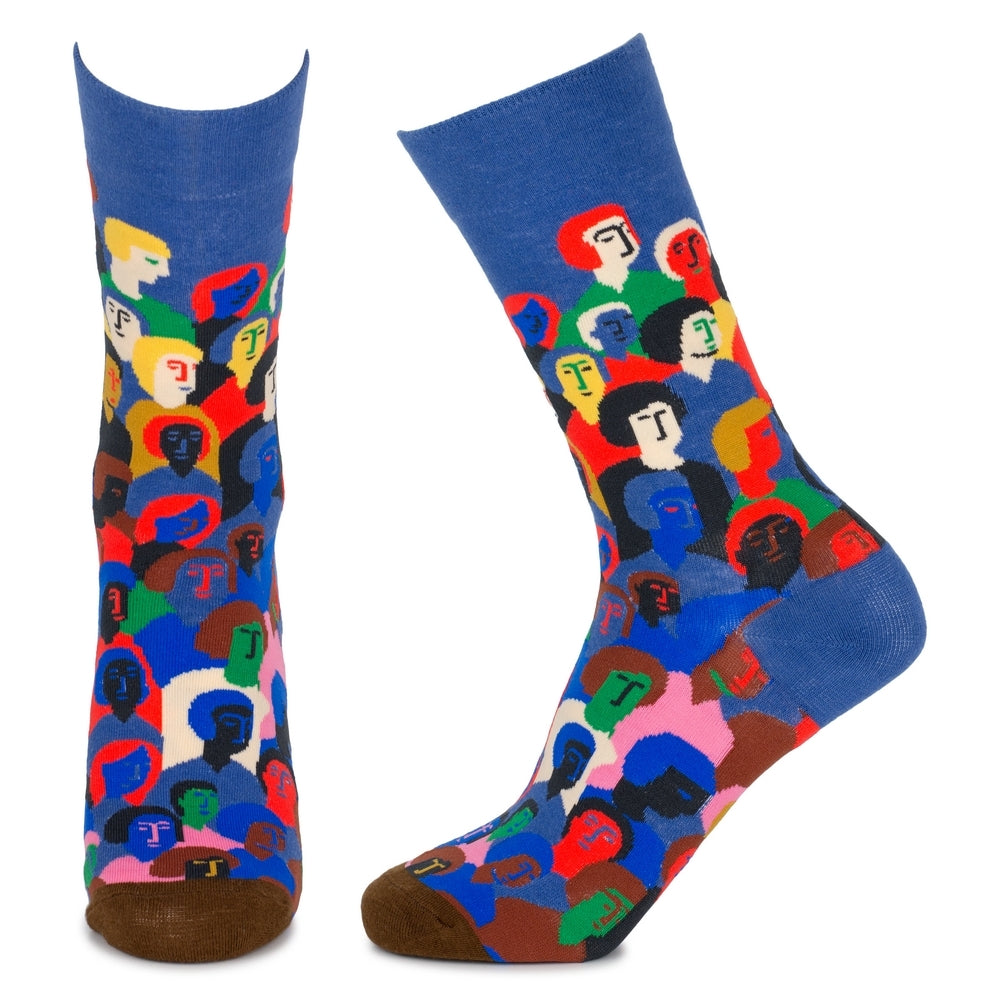 Step into fun with these Ladies Crowded People Blue Socks! Featuring a lively design of bustling figures, they add a pop of personality to any outfit. Soft and comfortable, they’re perfect for brightening your day and sparking smiles wherever you go.