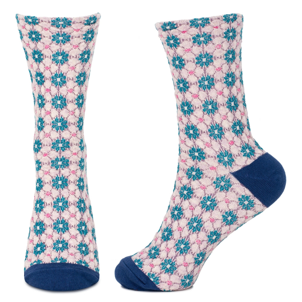 Ladies Embossed Arts & Crafts Flora Blue Socks