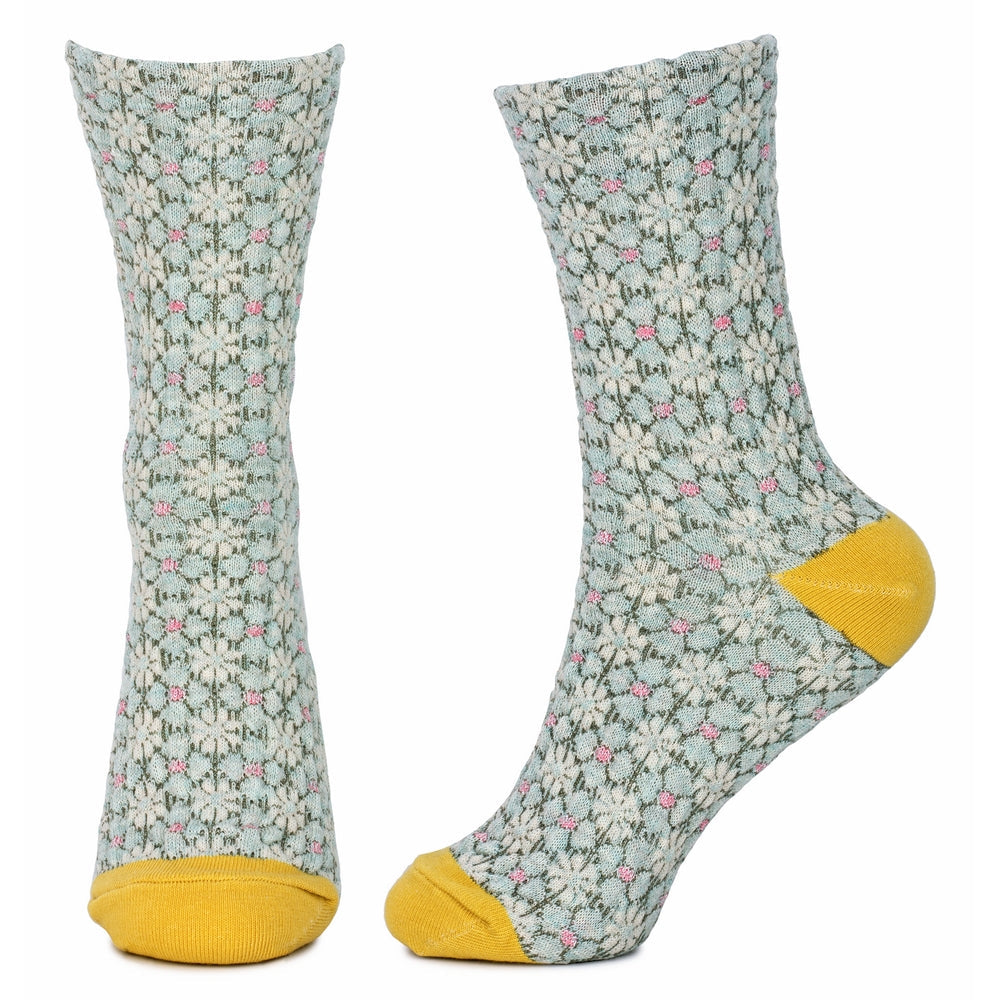 Ladies Embossed Arts & Crafts Flora Green Socks