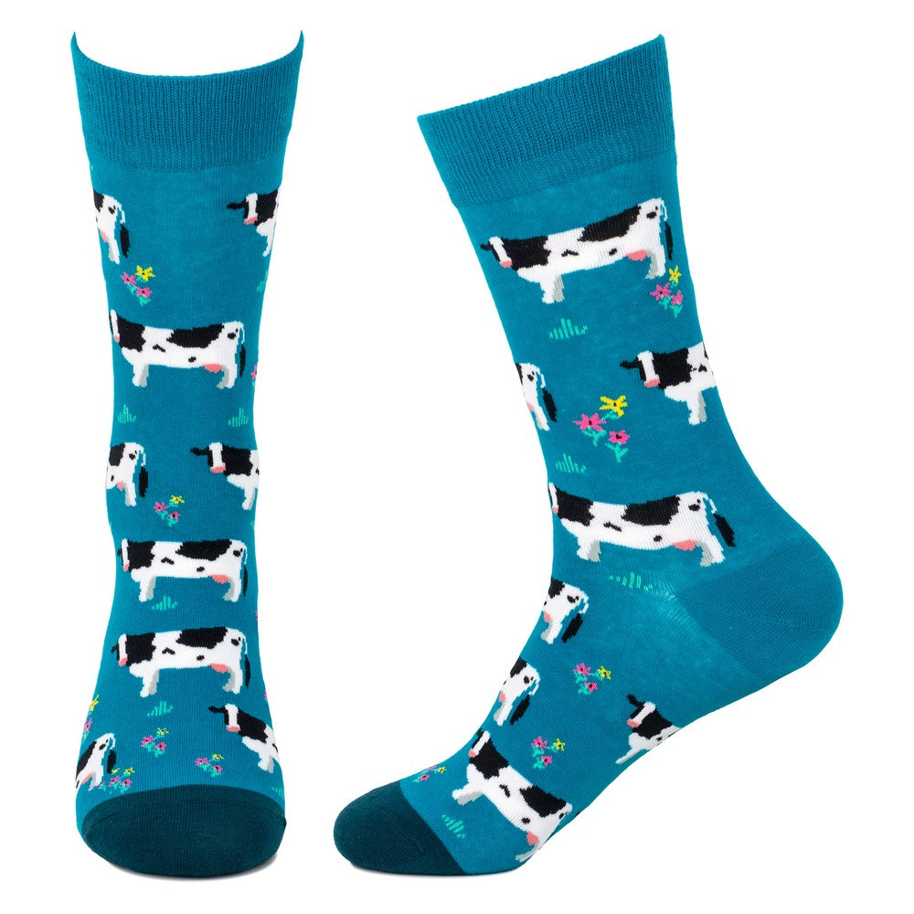 Ladies Friesian Cow Blue Socks