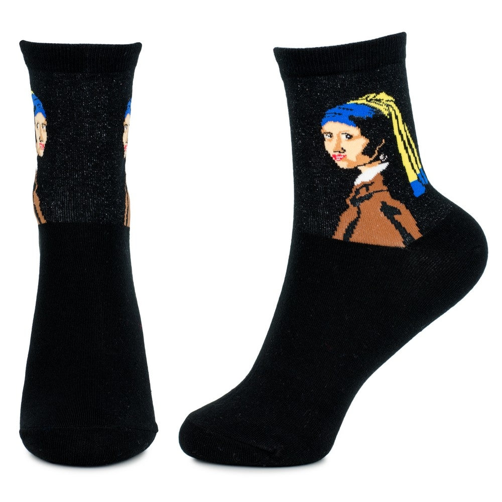 Ladies Vermeer Girl With A Pearl Earring Black Socks