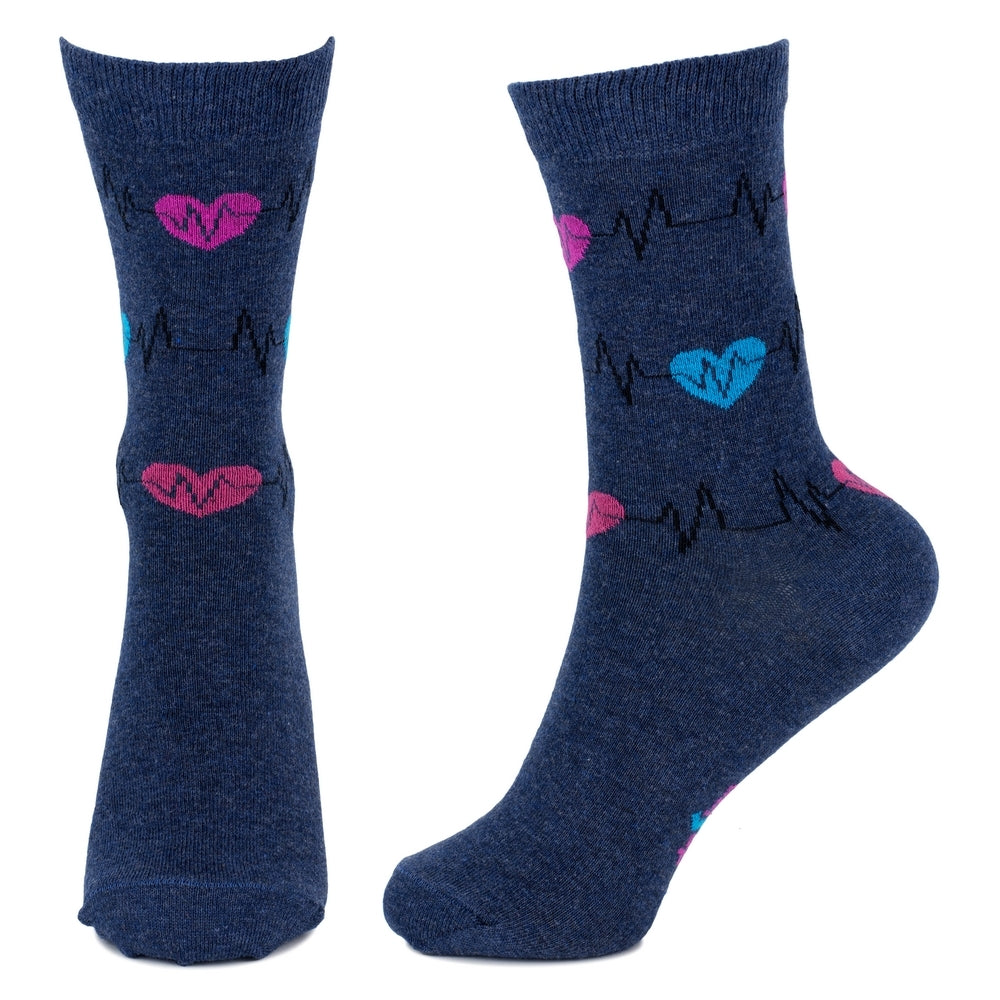 Keep your feet going with these Ladies Heartbeat Navy Socks. Made of soft cotton, these socks feature a playful heartbeat design in navy blue. They'll be sure to put a skip in your step (literally) and make your outfit pop. Who says socks have to be boring?!