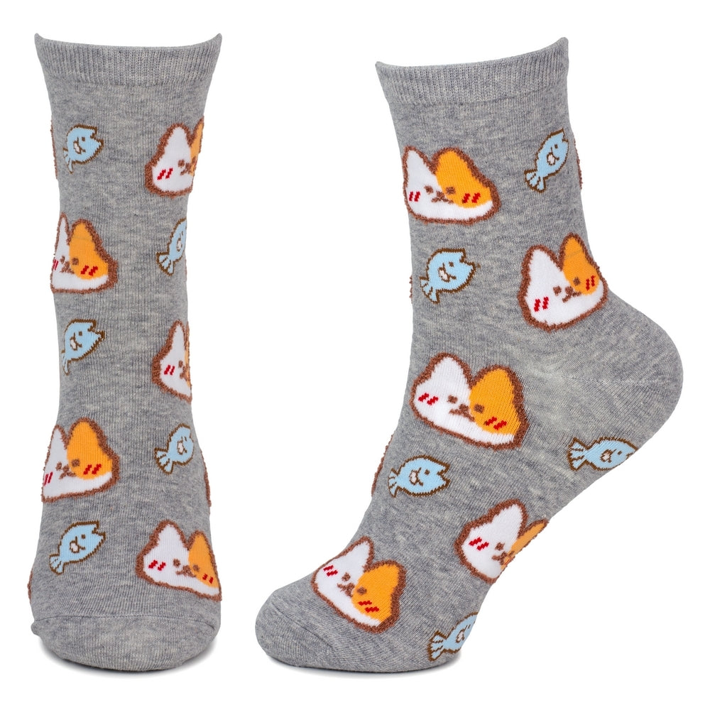 Ladies kawaii cats treats grey socks made of cotton & spandex