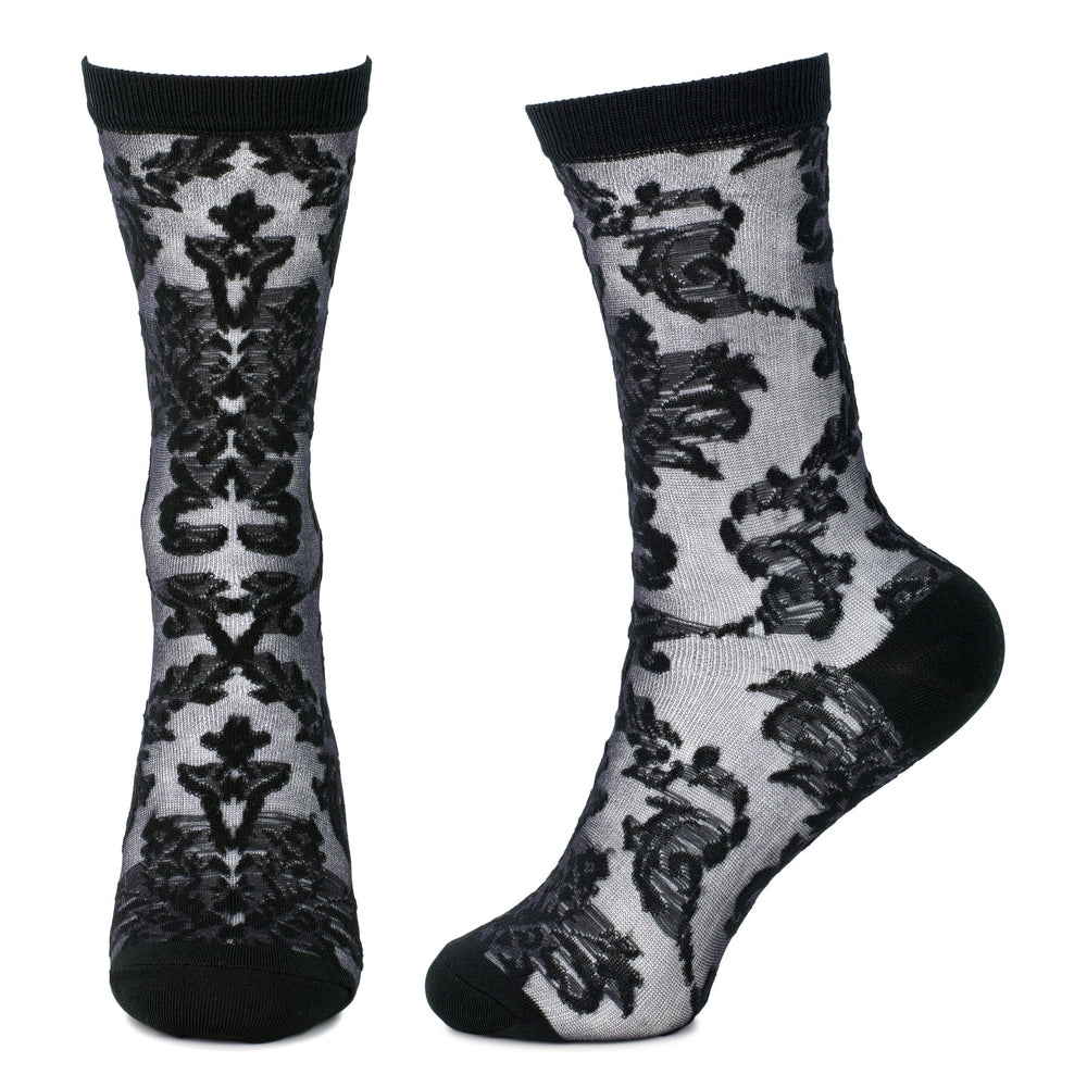 Slip into something delightfully daring with these Ladies Sheer Lace Fantasia Black Socks. Their delicate lace design adds a touch of whimsy while letting your skin peek through in all the right places. Perfect for turning everyday outfits into cheeky statements, these socks bring elegance and a playful edge to your wardrobe. Comfortable and captivating, they’re a fun way to express your unique style from heel to toe.