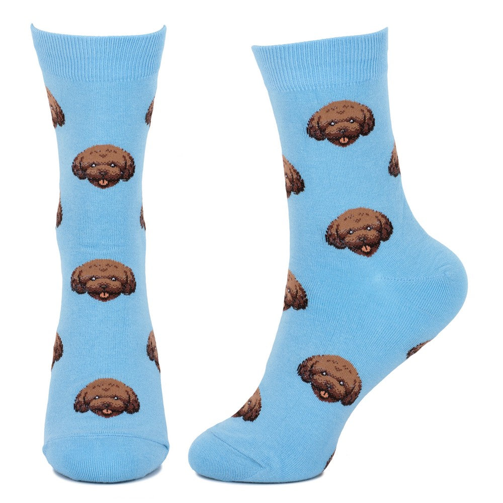 Step into fun with these Labradoodle Faces Blue Socks! Featuring adorable Labradoodle expressions on a vibrant blue background, they add a cheerful touch to any outfit. Soft and comfy, these socks keep your feet cozy while showing off your love for furry friends. Perfect for brightening your day or gifting to a dog lover!