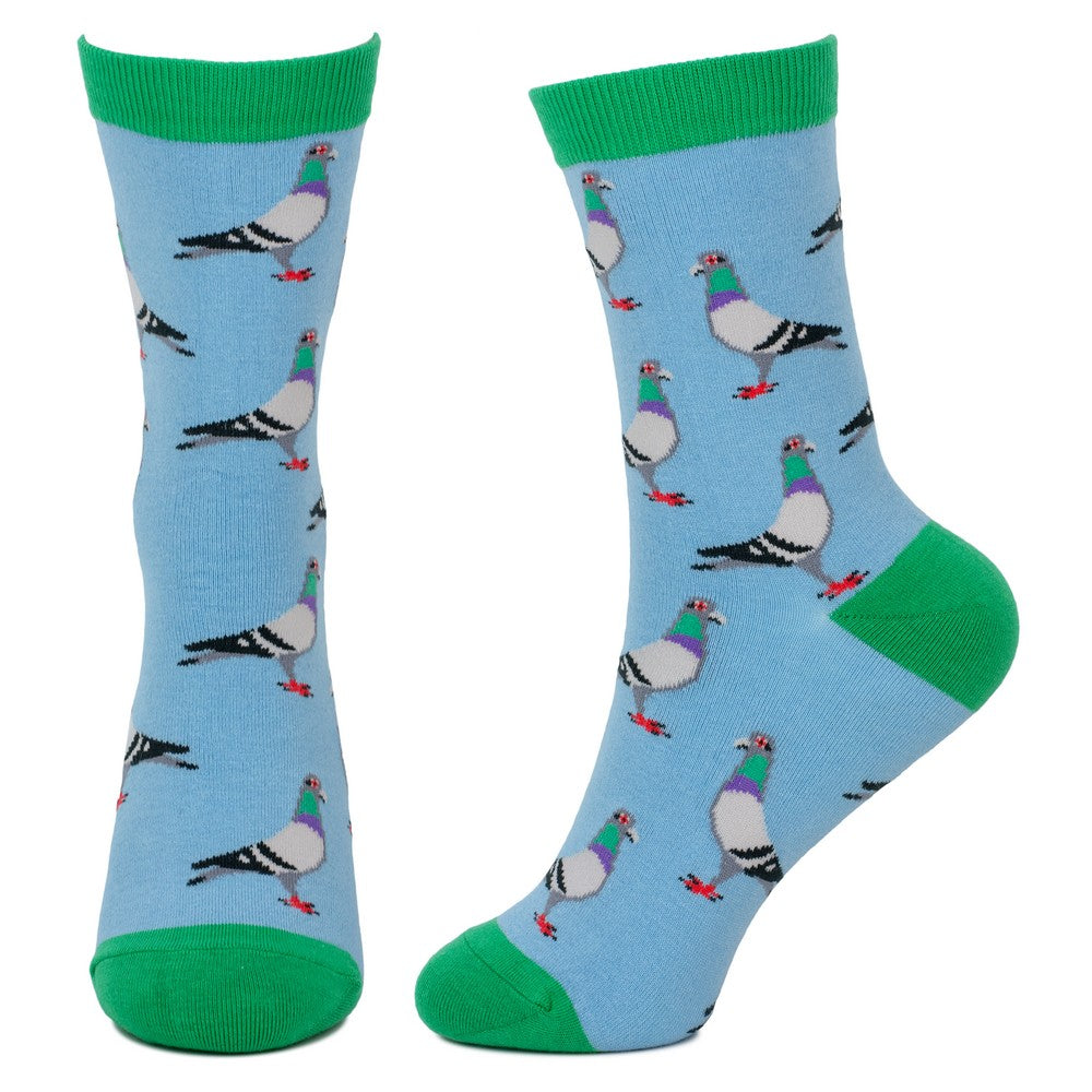 Step out in style with these Ladies Pigeon Socks, designed to add a fun twist to your everyday look. Crafted from soft cotton with a pale blue background, they keep your feet comfy while showcasing a charming pigeon pattern. Perfect for brightening up your outfit and sparking a smile wherever you go!