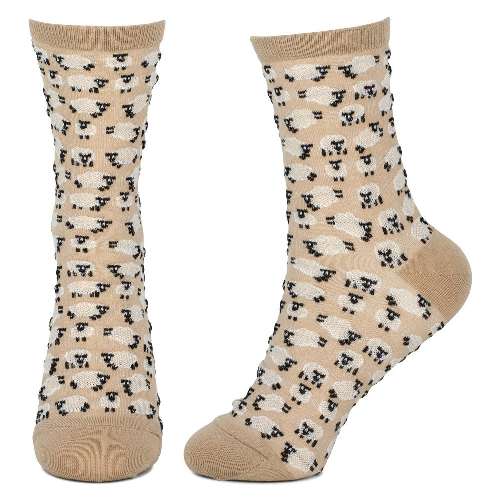 Step out in quirky style with our Ladies Sheep Flock Beige Socks! Featuring a tiny sheep flock all over pattern, these socks add a playful touch to any outfit. Plus, their soft beige colour adds a subtle pop to your wardrobe. Stay comfy and stylish with these fun socks!