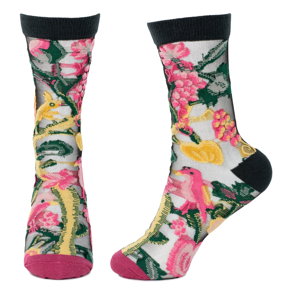 Ladies Sheer Bird & Fruit Black Socks