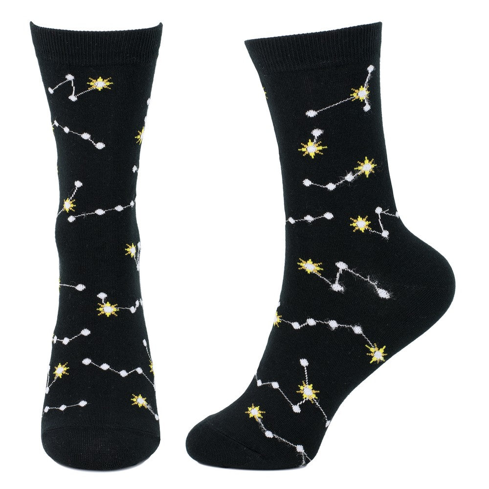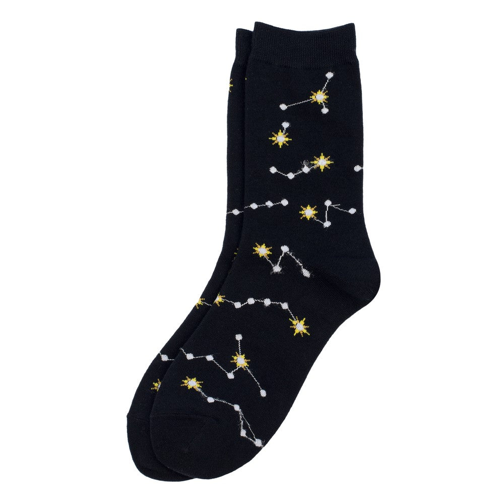 Step into a starry night with these Ladies Bright Constellation Black Socks. Featuring a playful constellation pattern on a sleek black background, they add a cosmic twist to any outfit. Perfect for brightening your day and your feet, these socks combine comfort with celestial charm, making every step feel like a stroll among the stars.