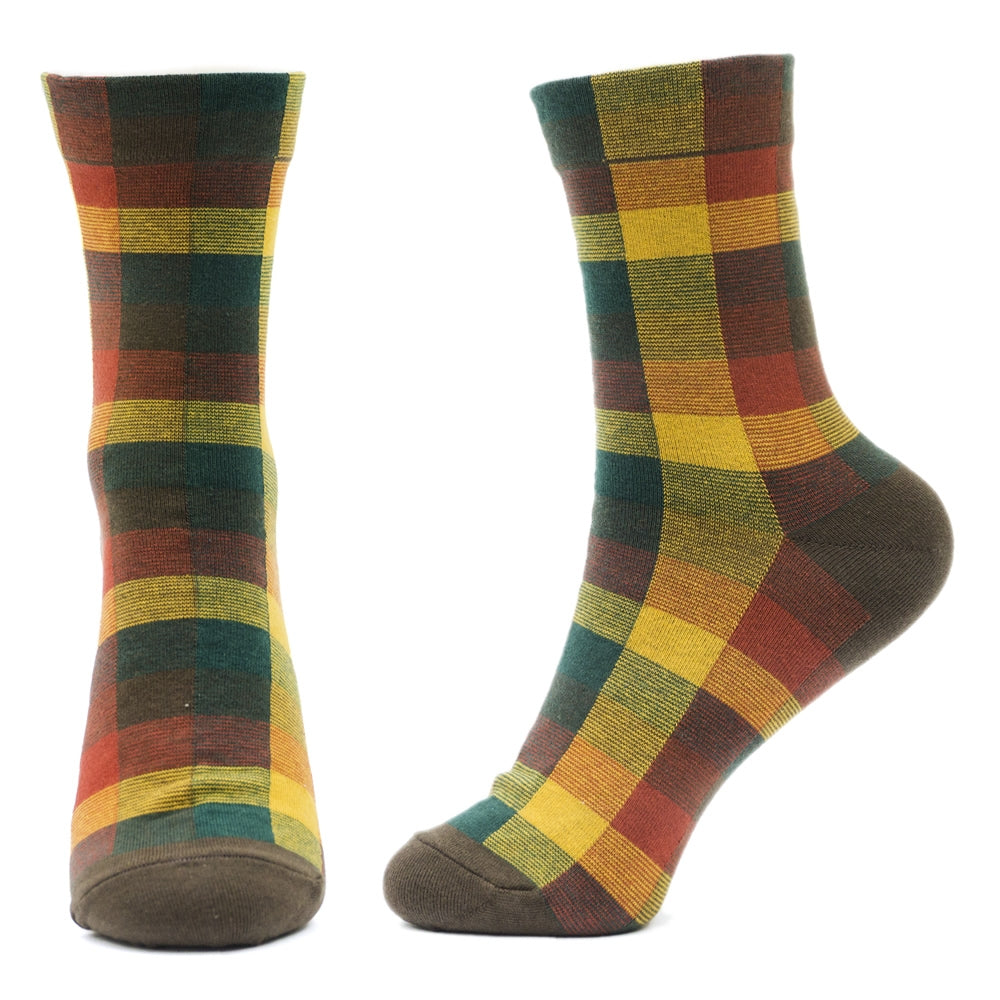 Ladies Warm Tone Red Check Socks
