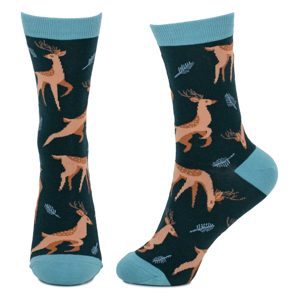 Ladies Woodland Fawn Teal Green Socks