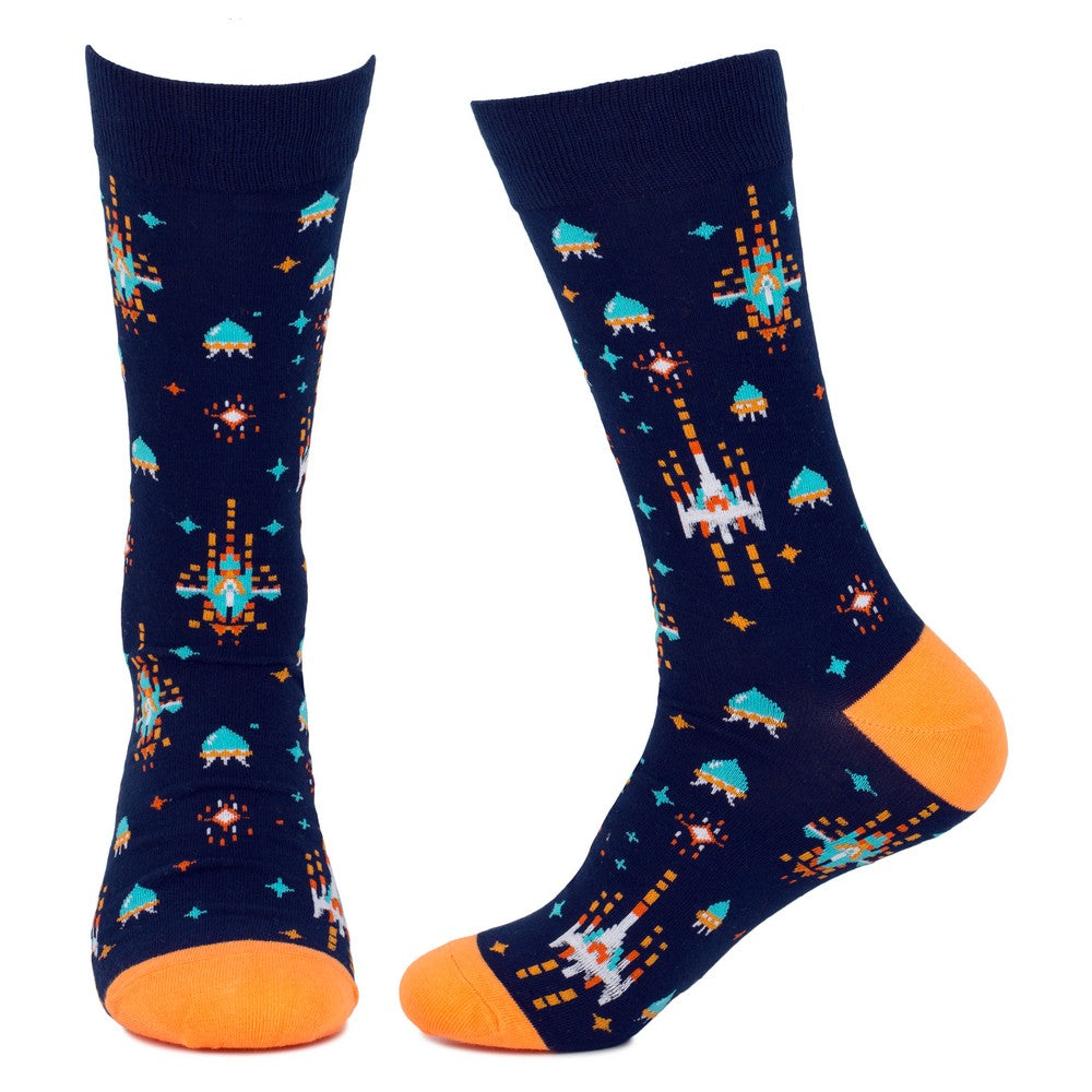 Step up your sock game with these Mens Space Invaders Blue Socks! These men's socks feature a playful space invaders design that will add a fun touch to any outfit. Perfect for the gamer in your life or anyone who loves quirky fashion statements. (Sock it to 'em with style!)